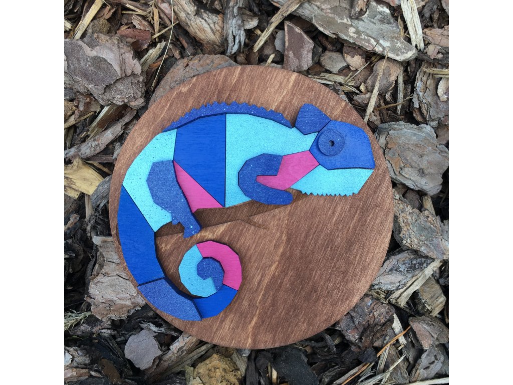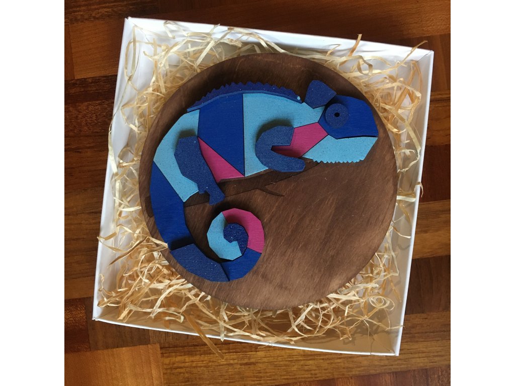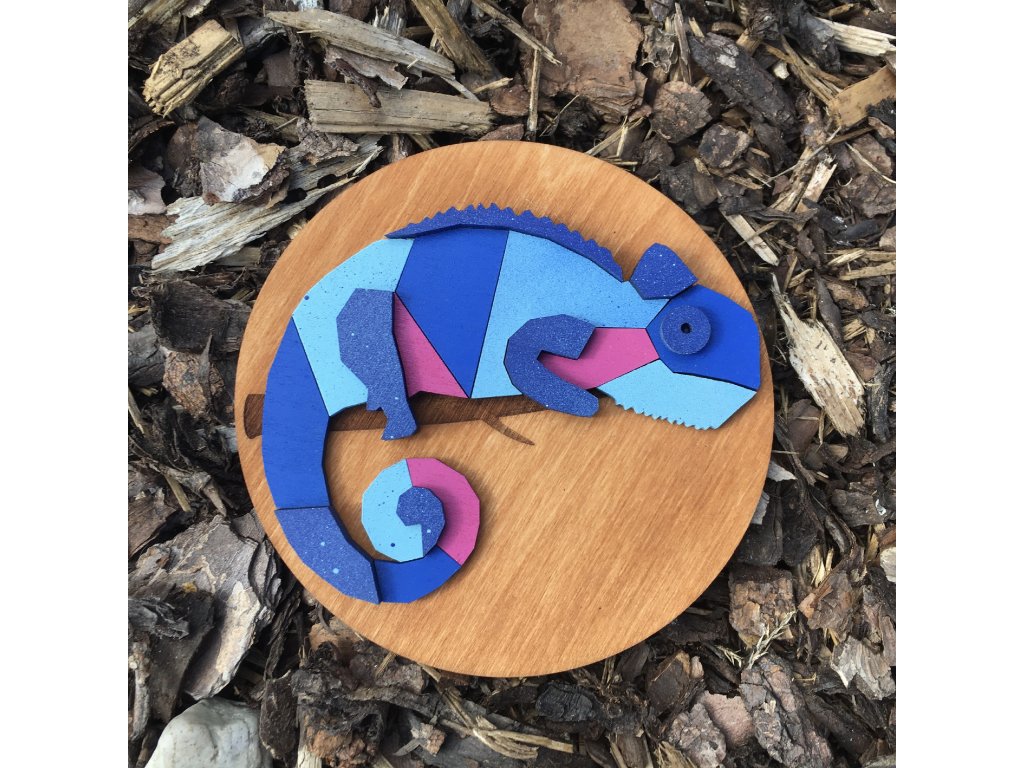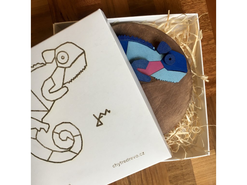 Chameleon je nápaditý kousek přírody u Vás doma. Jedinečný design a přírodní materiál. Jedná se o dekoraci, kterou si můžete přilepit, nebo pověsit na hřebíček.