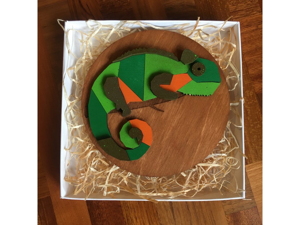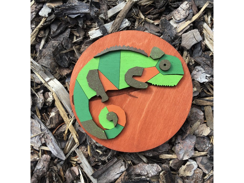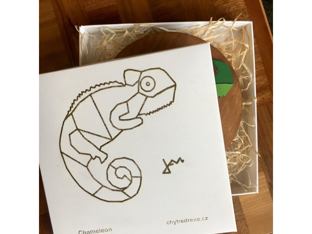 Chameleon je nápaditý kousek přírody u Vás doma. Jedinečný design a přírodní materiál. Jedná se o dekoraci, kterou si můžete přilepit, nebo pověsit na hřebíček.